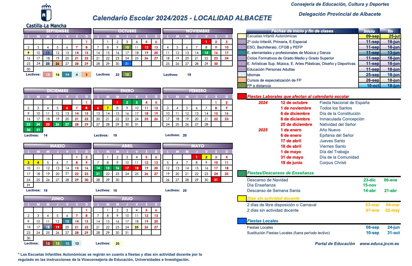 ¿Necesitas tener a mano las fechas importantes del calendario escolar en Albacete para el curso? ¡Has llegado al lugar indicado! En Albacete Guía, no solo te conectamos con los mejores negocios de la ciudad, sino que también te proporcionamos información esencial para el día a día, como este completo calendario escolar de Albacete.